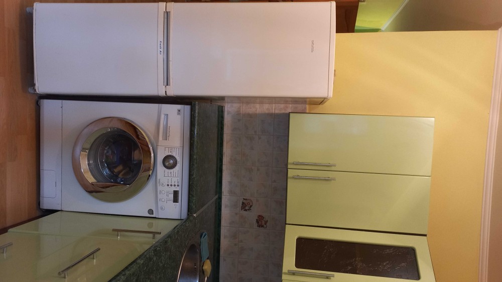 На кухні є необхідна техніка (холодильник, пральна машина, газова поверхня та духова шафа)