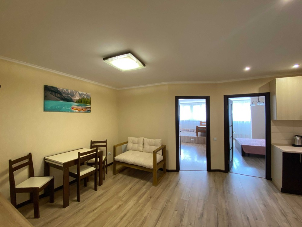 Нова, простора, світла, затишна квартира з двома окремими спальнями і кухнею-студією, велика ванна кімната.