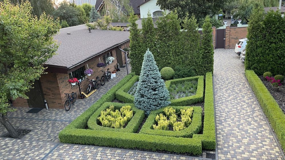 Територія ДУЖЕ зелена та доглянута, ландшафтний дизайн, туї , самшити, ялівець, 4 сотки газону!!! Є малина, смородина, шовковиця та абрикоси.