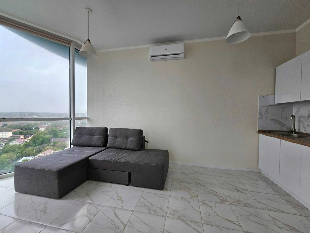 Панорамні вікна в підлогу. Дивовижна картина за вікном краєвиди на море та Одесу. Золотий Берег в Одесі - це популярний пляж відомий своїм піщаним берегом, розвиненою інфраструктурою (кафе, клуби, дитячі майданчики), біля моря.
