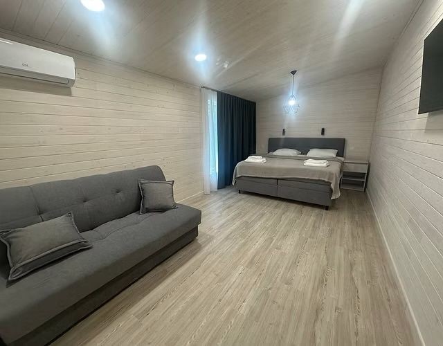 Великий номер (35м²), який складається з однієї житлової кімнати, двоспальне ліжко 180*200, розкладний диван 160*200, санвузол з біде, TV, Інтернет