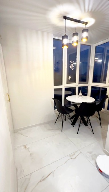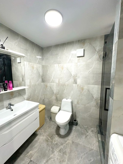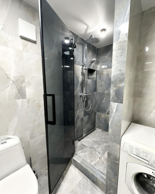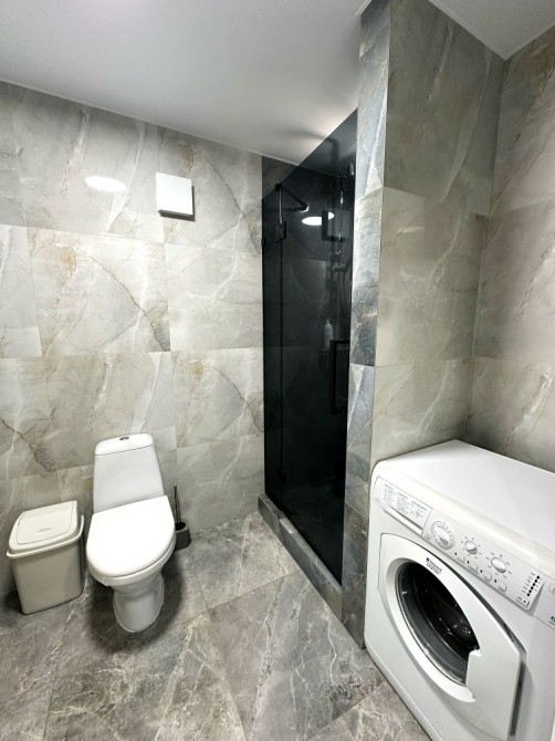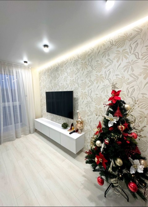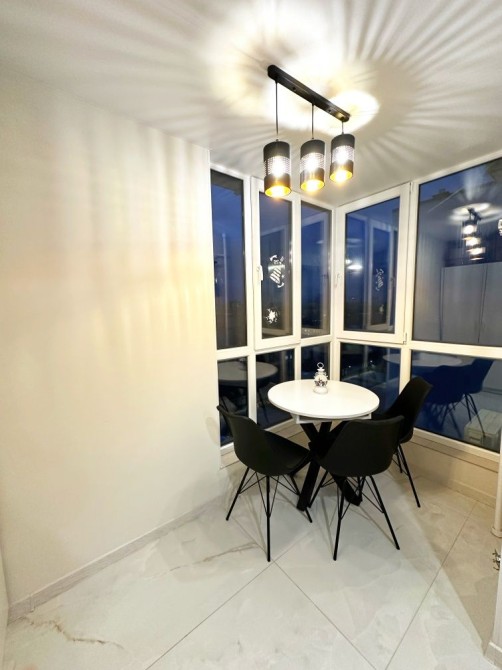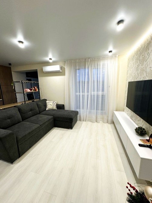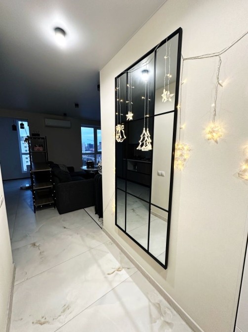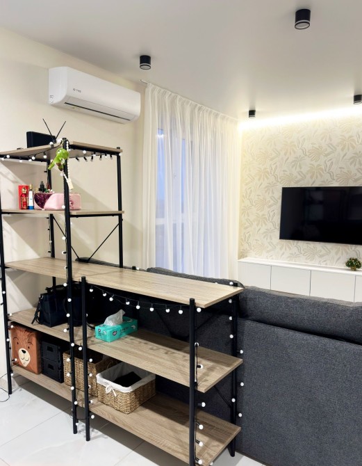 Квартира має сучасний вигляд та всі необхідні меблі та техніку для комфортного проживання, таку як холодильник, пральна машина, кондиціонер та телевізор.