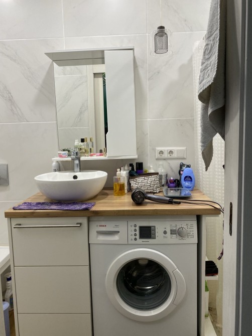 В наявності всі меблі та повний комплект побутової техніки: дві пральні машини, холодильник, мікрохвильова піч).