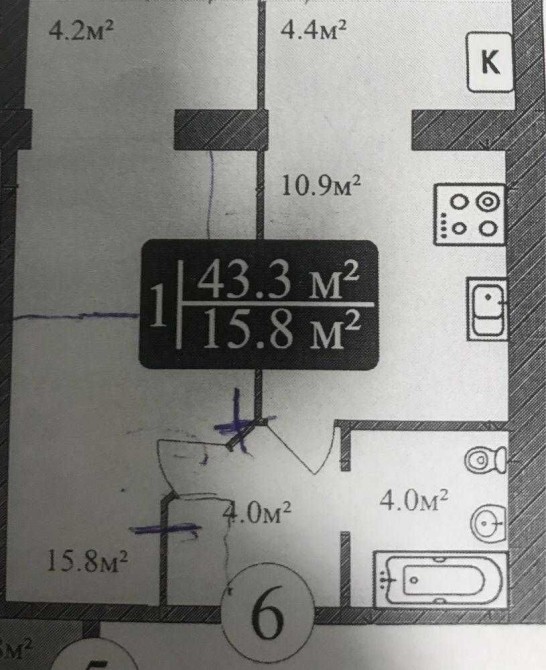 • Общая площадь 44 м2