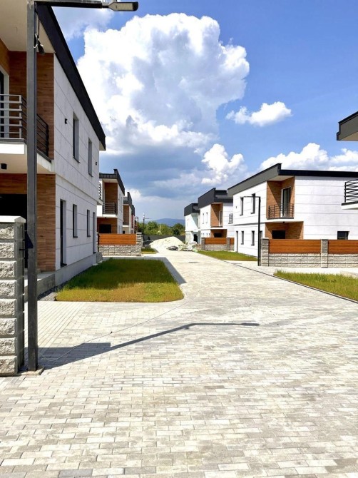Можливий продаж за програмою єОселя!!! Дуплекс площею 120 м² включає кухню-вітальню, 3 кімнати, 2 санвузли, два балкони та терасу. Дуплекс 2-поверховий, побудований із використанням керамічної цегли та додатково утеплені. Оснащений вхідними броньованими дверима та вікнами з подвійним склопакетом від компанії "REHAU". Чорновий стан ремонту. У вітальні передбачено вихід для каміна. Є артезіанська свердловина глибиною 22 метри, обладнана насосом. Закрита територія засіяна газонами, а доріжки викладені бруківкою. Є паркінг для двох автомобілів. В загальному закрите котеджне містечко налічує 16 дуплексів, 1-8 вже здані в експлуатацію, 9-16 тривають роботи з благоустрою орієнтовна здача в експлуатацію 3-й квартал 2024 року. 2 варіанти прибудинкової території, можливе власне планування у дуплексах, які ще не здані в експлуатацію.
