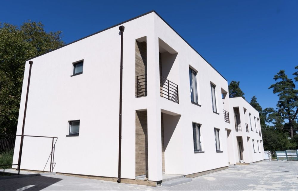 Живіть серед природи, не відмовляючись від комфорту міста! Новий комплекс дуплексів розташований у затишному приватному секторі Бучі, поруч із сосновим лісом та всього за кілька хвилин пішки до Бучанського міського парку.