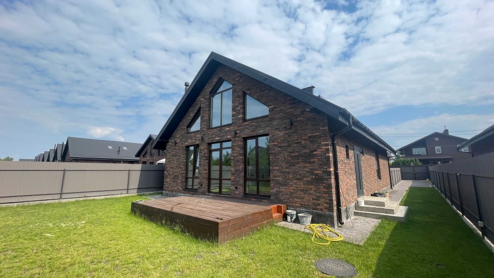 Будинок одноповерховий з мансардою, збудований з якісної баварської цегли. У будинку великі вікна, тепла підлога, власна свердловина і септик на 6,5 кубів. На ділянці висаджені ялинки-туї.