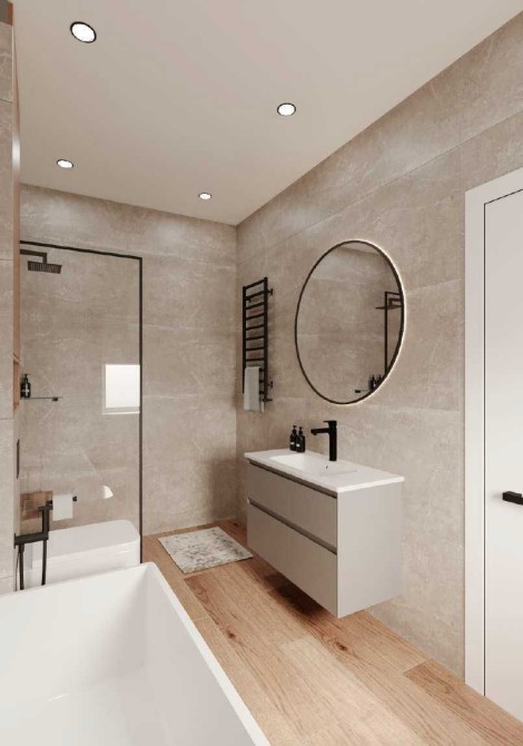 Ремонт за дизайнерським проєктом. Включає в себе пофарбовані стіни з декоративною кладкою, ламінат та плитка на підлозі, підвісні стелі, освітленні і повністю укомплектоване технічне приміщення.