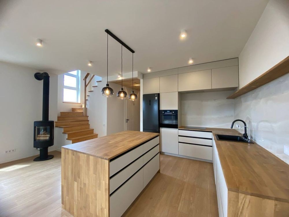 Вже встановлена вбудована кухня, облашнотовані санвузли, є ліжко та гардероб, камін для обігріву та затишку