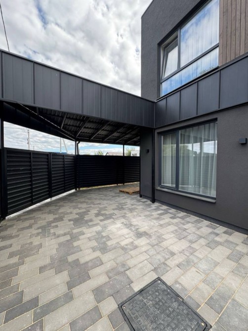Прибудинкова територія облаштована для комфортного життя: є зручний навіс для авто, розпашні ворота для заїзду, а також затишна зона барбекю для відпочинку з рідними та друзями.