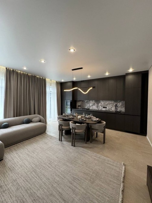 Раціональне та продумане планування: у будинку передбачено чотири окремі кімнати, простора кухня-вітальня площею близько 30 м², два санвузли та технічне приміщення. Такий формат дозволяє зручно розмістити велику сім’ю та створити затишок у кожній зоні.