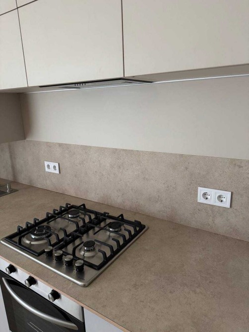 Сучасна кухня зі зручною та раціональною системою зберігання. Стільниця виконана з фінської фанери з покриттям HPL, не боїться гарячого та води.