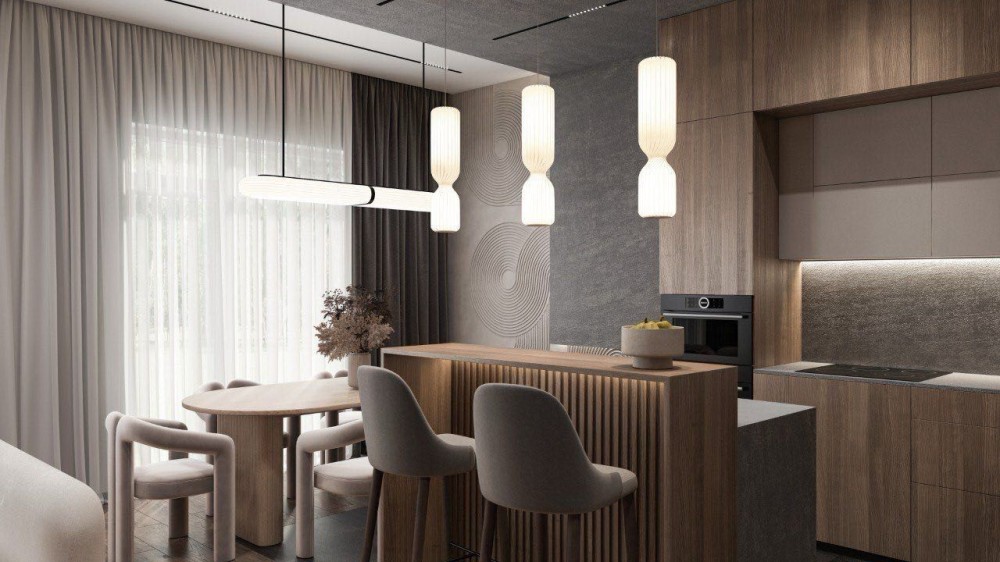 У вартість входить сучасна кухня з технікою: варильна поверхня, витяжка, холодильник, посудомийна машина;
