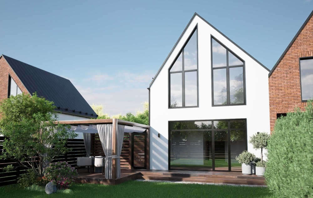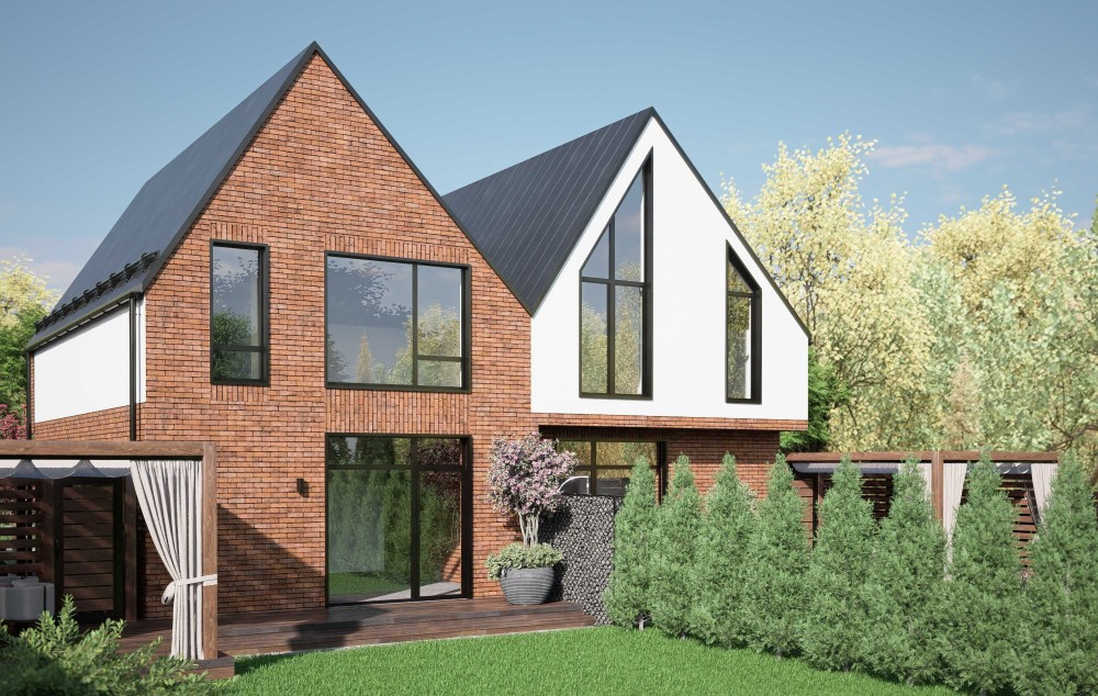 Ми розробили сучасні дизайни фасадів будинків з панорамними вікнами, які додають затишку та комфорту.
