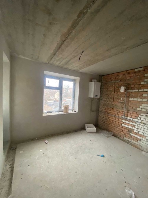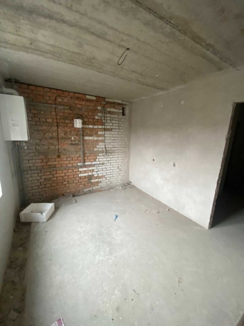 Стан після будівельників: стяжка, штукатурка стін, розводка електрики, котел, лічильники.
