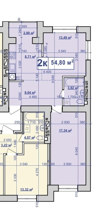 Площа 55м2 , двостороннє планування яке можна перепланувати у двокімнатну кухню студію