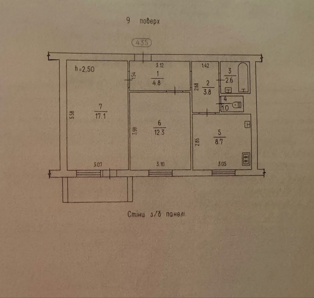 Двокімнатна квартира за адресою вул. Героїв Дніпра,69