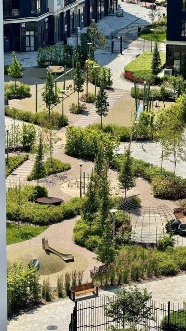 На території ЖК — безпечний закритий двір, спортивні зони, дитячі майданчики, магазини, кав’ярні, аптеки, Новапошта, фітнес-клуб, швидкісний інтернет, відеонагляд та IP-домофони. Все зроблено так, щоб ви жили комфортно й безпечно.