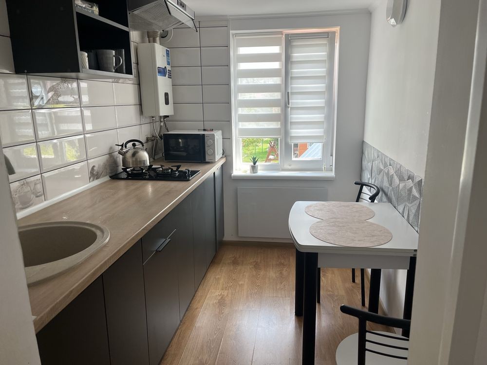 Кухня оснащена всім необхідним: газова плита, мікрохвильова піч, холодильник. Квартира знаходиться на другому поверсі. При заселенні 2 осіб - ціна 1000 грн, 3-4- 1200 грн