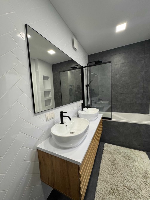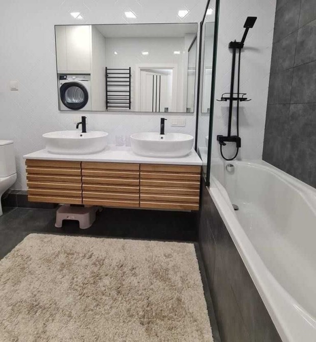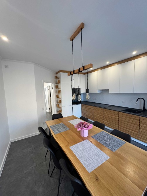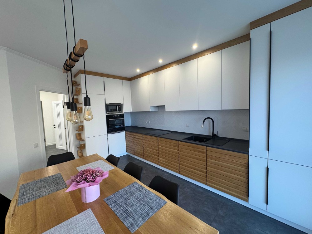 Меблі з натурального дерева, якісна дороговартісна техніка Electrolux: пральна та сушильна машина, вбудовані холодильник, морозильна камера, посудомийна машина, індукційна плита, душова шафа, мікрохвильова піч*