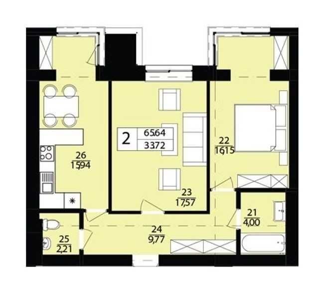 Двокімнатна квартира в зданому будинку, Дубово, Дизайн Парк - фото 2