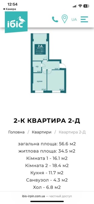 Двокімнатна квартира в ЖК Ібіс