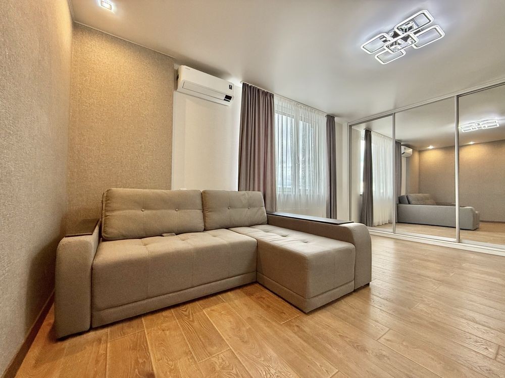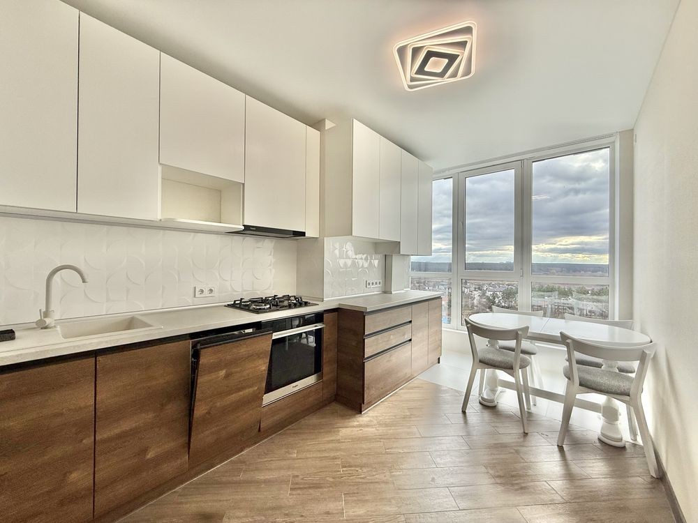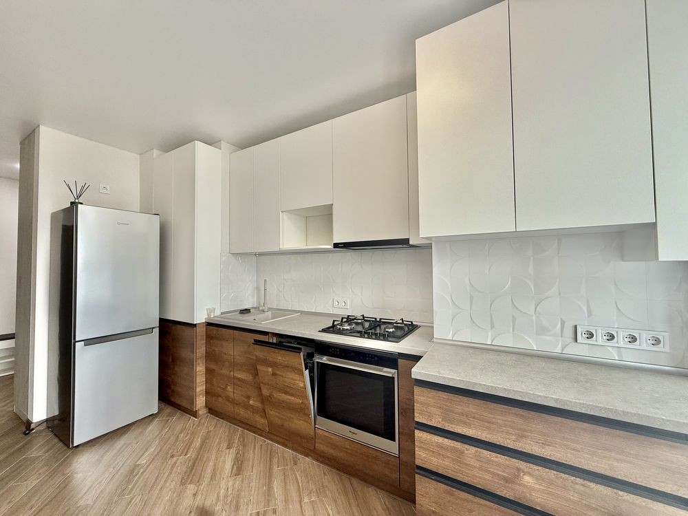 Квартира укомплектована абсолютно всією техніко: варильна поверхня, духова шафа, витяжка, холодильник, 2 кондиціонери, пральна машина, посудомийка.