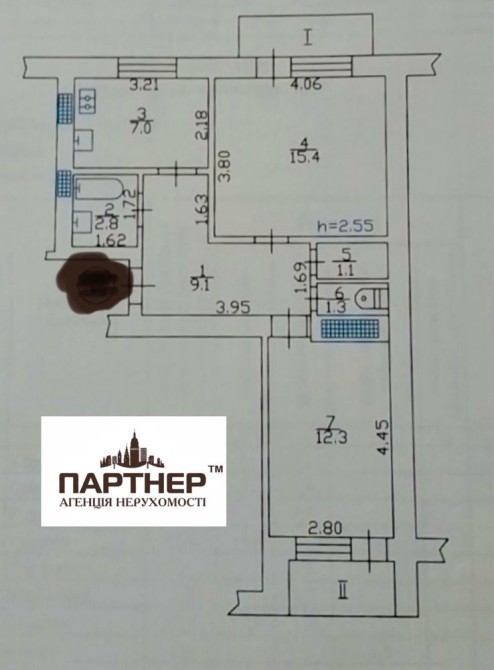 • Площадь кухни 7 м2