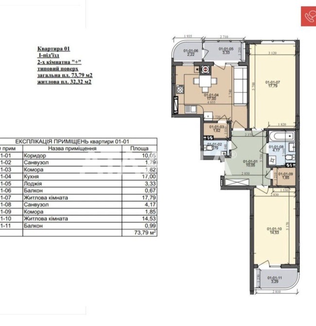 • Общая площадь 73.79 м2