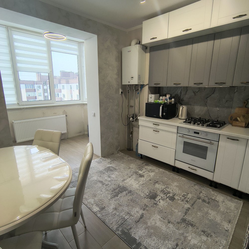 Квартира має 2 окремі кімнати (20 і 14.4 метрів), простору кухню (14.5 метрів), суміжний санвузол та гардеробну (можна використовувати як технічне приміщення, підключена пральна машина).