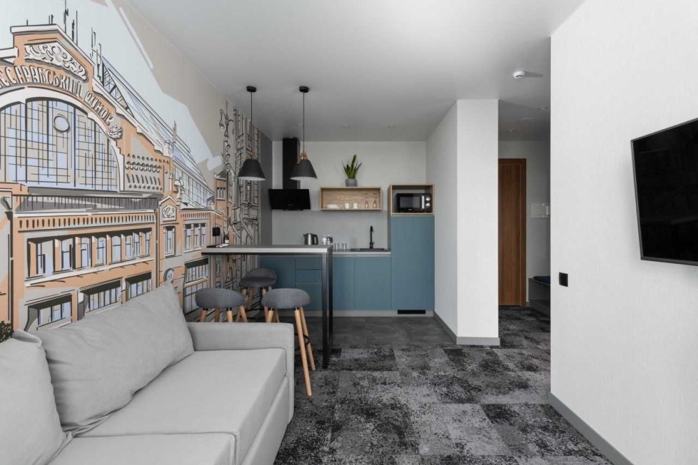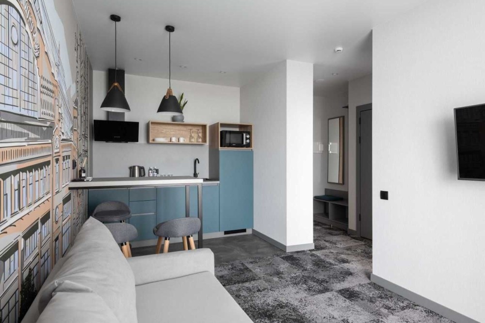 Пропонуємо в оренду затишні двокімнатні апартаменти площею 33-35 м² для довгострокового проживання. Апартаменти ідеально підходять для комфортного життя в Києві і знаходяться в зручному районі, в готелі B1 Hotel в 7 хвилинах від метро Академмістечко та 10 хвилин від метро Житомирська.