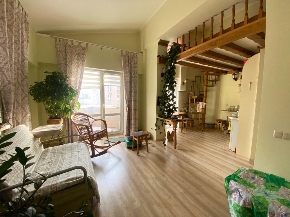 Двоповерхова квартира в центрі міста. 2 кімнати. Площа 50 кв. Свій вихід на велику терасу з видом на все місто. Та ще є балкон, який ми не встигли сфотографувати до виїзду. Також є гардеробна кімната/кладова.
