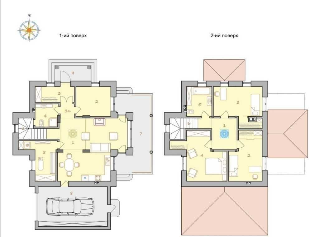 Будинок має велику криту терасу площею 21м² та гараж 27м² з автоматичними воротами.