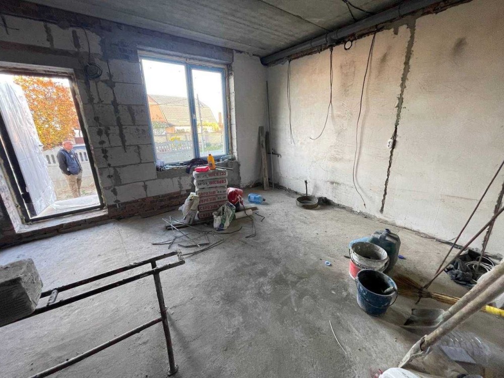 По плануванню маємо одну житлову кімнату, кухню-студію та суміжний санвузол. Площа 60м2, земельна ділянка 2 сотки.