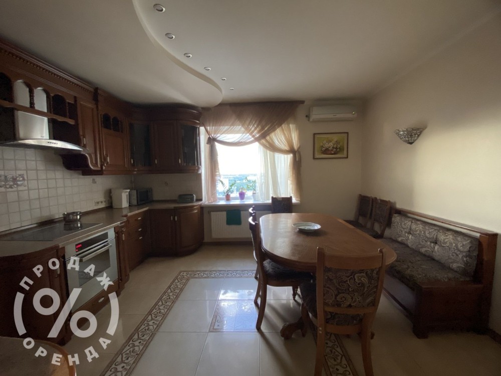 Інтер'єр квартири реалізовано в стилі класичного дизайну з домінуванням натуральних матеріалів, зокрема деревини, що підтверджує високий рівень капіталовкладень у ремонт. Усі меблі, техніка та оздоблення залишаються у квартирі, що дозволяє новому власнику розпочати експлуатацію об'єкта без додаткових інвестицій у облаштування.