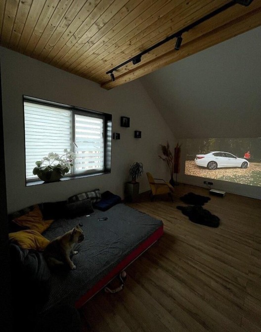 На першому поверсі: спальня, кухня-студія, два гардероба, велика ванна з туалетом, кладовка. На другому: спальна кімната, кабінет та с/в з умивальником.