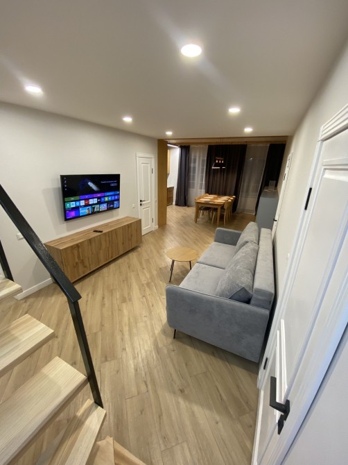 Сучасне зручне дворівневе помешкання у самому центрі старого міста, розрахована на розміщення 10 чоловік, зручне планування, три санвузла ,чотири окремих спальні, простора вітальня з кухнею і обідньою зоною. Знаходиться біля самої ратуші. 120 м². Має закритий дворик