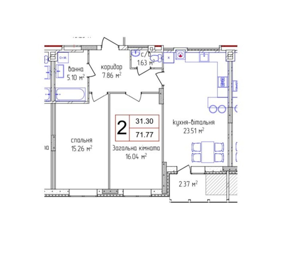 • Общая площадь 72 м2