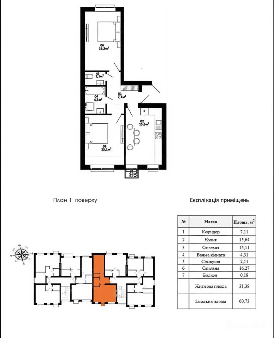 • Общая площадь 61 м2