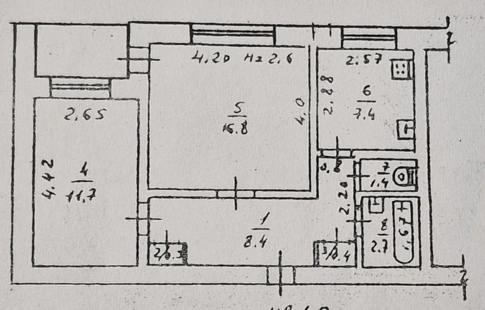 • Площадь кухни 8 м2