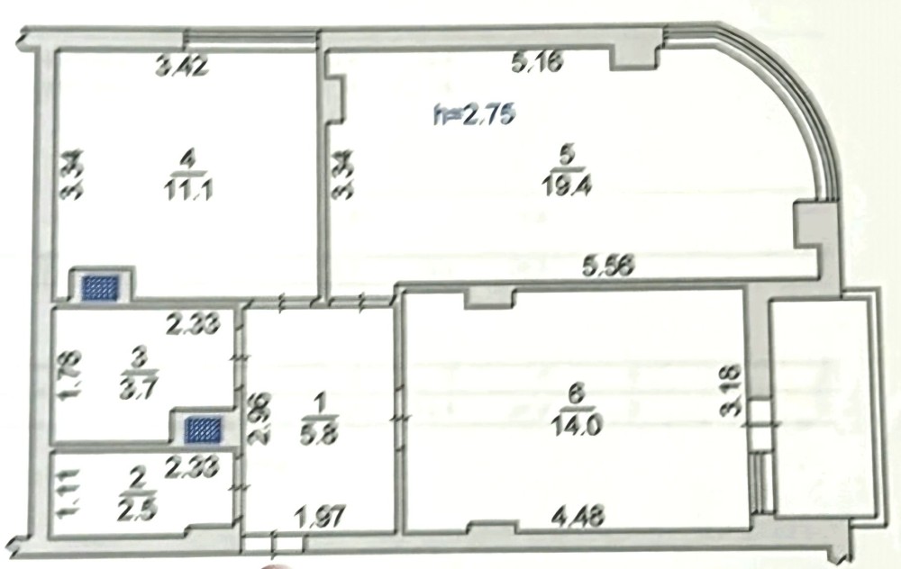 • Общая площадь 58 м2