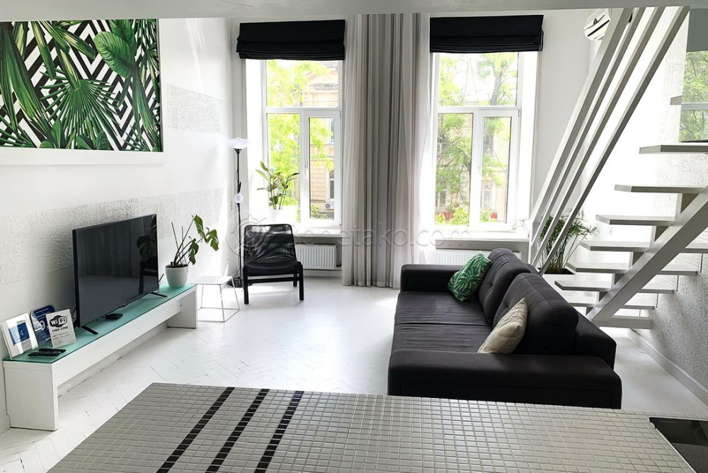 Код: 141. ПОМЕСЯЧНО АРЕНДА АКТУАЛЬНА В ПЕРИОД С 01.09 ДО 30.05 (в летний сезон сдается посуточно от 2-х суток, раннее бронирование от 5-и суток и более). Однокомнатная квартира в центре Одессы, пер. Некрасова, 4 (угол ул. Гоголя). 2/2 эт. дома - памятника архитектуры, общая площадь 70 кв. м. Евроремонт, просторная комната 60 кв. м., на первом уровне - кухня санузел и холл, на втором - спальня. Высота потолков - 6,20 м. Есть все необходимое для проживания, квартира оснащена абсолютно всем. Под окнами находится охраняемая парковка, ресторан и магазин. Хорошее расположение, рядом кафе «Гоголь-Моголь», памятники архитектуры и достопримечательности. Аренда от 3-х месяцев и более. Стоимость может варьироваться в зависимости от срока аренды. Перед просмотром уточните наличие и детали по VIBER, WHATSAPP или TELEGRAM, указав «КОД» из объявления. КОМИССИЯ ЗА УСЛУГИ РИЭЛТОРА - 50% от месячной аренды (разовая оплата при оформлении договора).