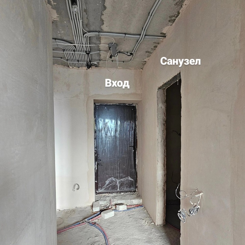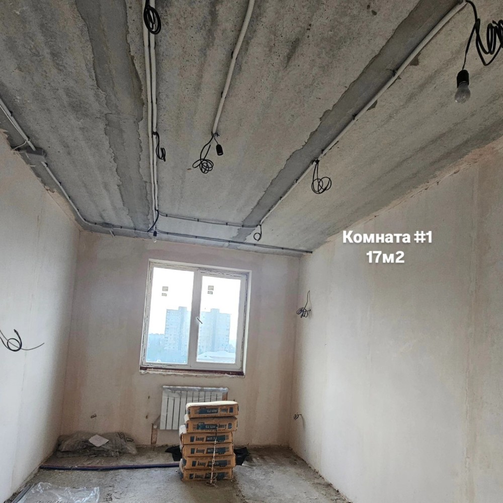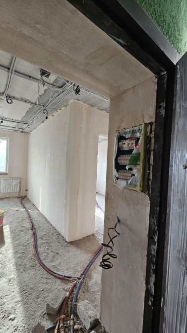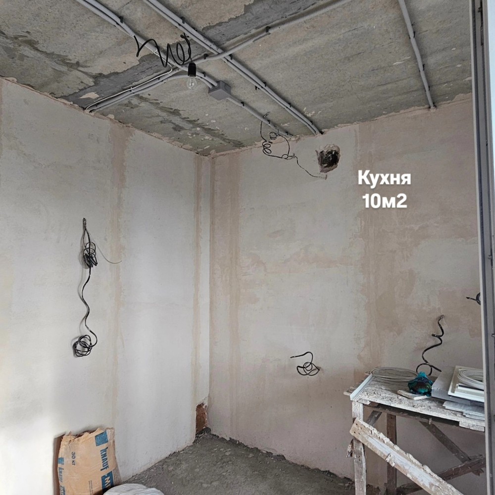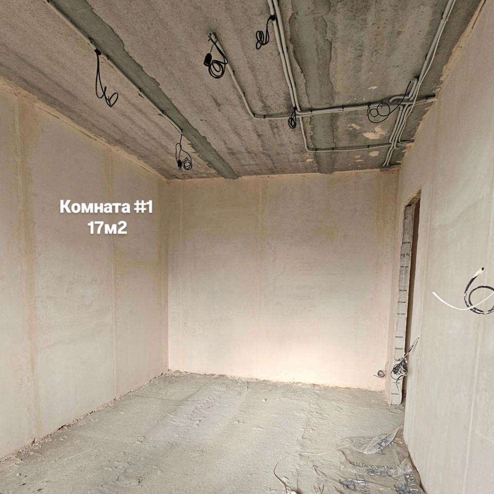 В квартире выполнены черновые работы - штукатурка стен, проводка, новые батареи.