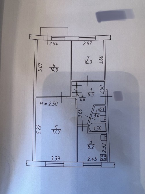 Квартира общей площадью 60.2 м2, формат: прихожая, три комнаты, кухня, совмещённый санузел, два балкона