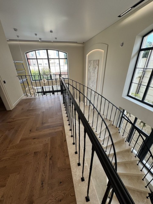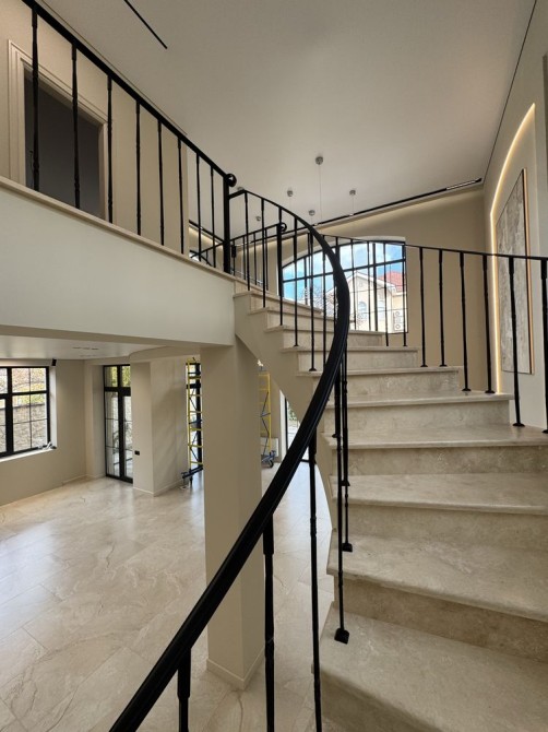 2 эт.: 3 спальни, одна из которых с гардеробной и санузлом, одна с выходом на террасу, санузел, и красивая лестница, разделяющая общественную и приватную зоны.