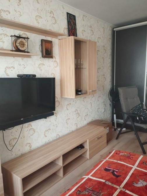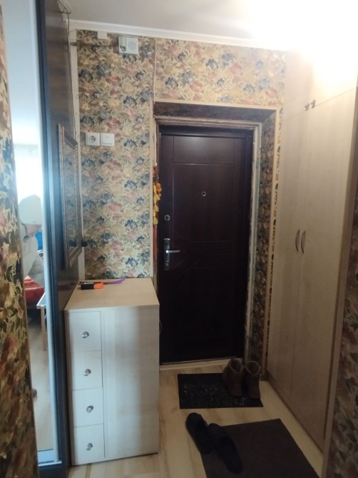 В квартирі зроблено ремонт з заміною труб,стояка,частково електрики.Вікна металопластикові,балкона немає.В санвузлі кафель,сантехніка теж мінялась,є бойлер.Плита газова.Підлога плитка в санвузлі,коридорі та кузні,в кімнаті ламінат.В квартирі залишається шафа-купе,вбудовані кухонні меблі,меблева стінка на фото,диван.