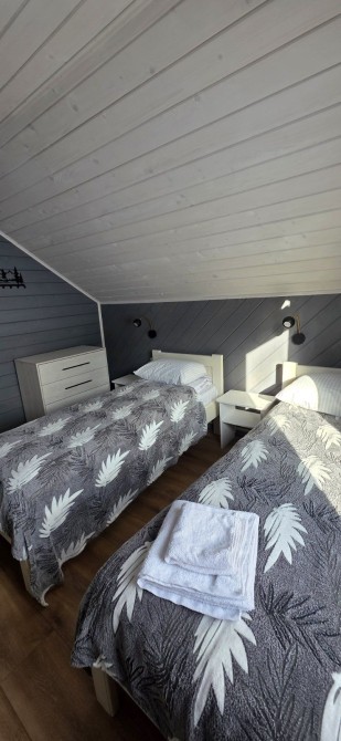 Здається затишний дворівневий номер подобово. Закрита, тиха територія — відчуття власного простору з перших хвилин. Тераса для ранкової кави або спокійного вечірнього відпочинку. Всередині є все необхідне, щоб почуватися як удома: холодильник пральна машина мікрохвильовка чайник посуд рушники та тапочки На другому ярусі — широке зручне спальне місце та телевізор з YouTube Premium і Netflix. На першому поверсі — м’який диван і проєктор для затишних фільмів та серіалів. Безкоштовна парковка поруч із будинком. Також є можливість замовити чан — чудовий варіант для релаксу просто неба. Заселення — з 14:00 Виїзд — до 12:00