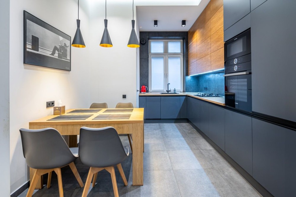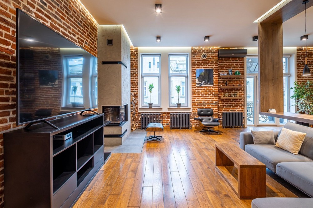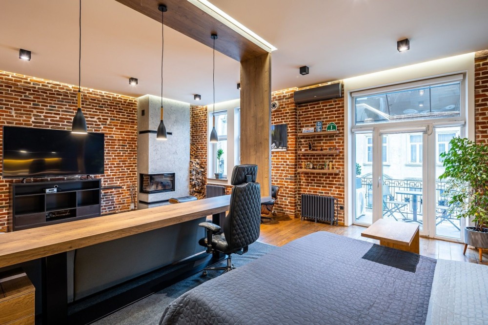 1 кім простора квартира в сучасному стилі з балконом, каміном, кондиціонером,, ванною, всією необхідною побутовою технікою. Здається для пари або однією особи, без тварин, без дітей. Смарт тв.