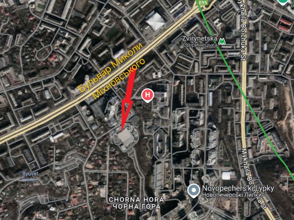 №448, Київ, Печерськ, вул. Чешська, 16 (за магазином Novus на бульварі Дружби Народів, зараз бульвар Миколи Міхновського), станція метро «Звіринецька».