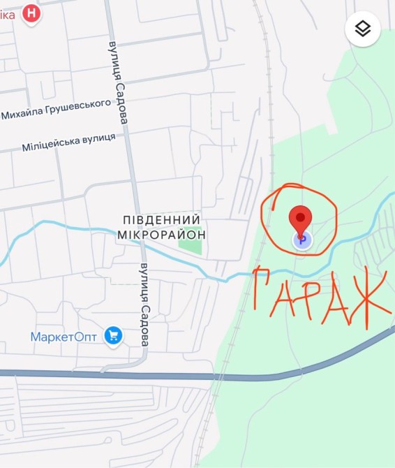 Гараж знаходиться ЗА мостом на БАМІ , перший зʼїзд на ліво , через 200 метрів поворот направо в кооператив